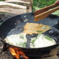 Cheddar-Pizza mit Wildkräutersalat vom Lagerfeuer
